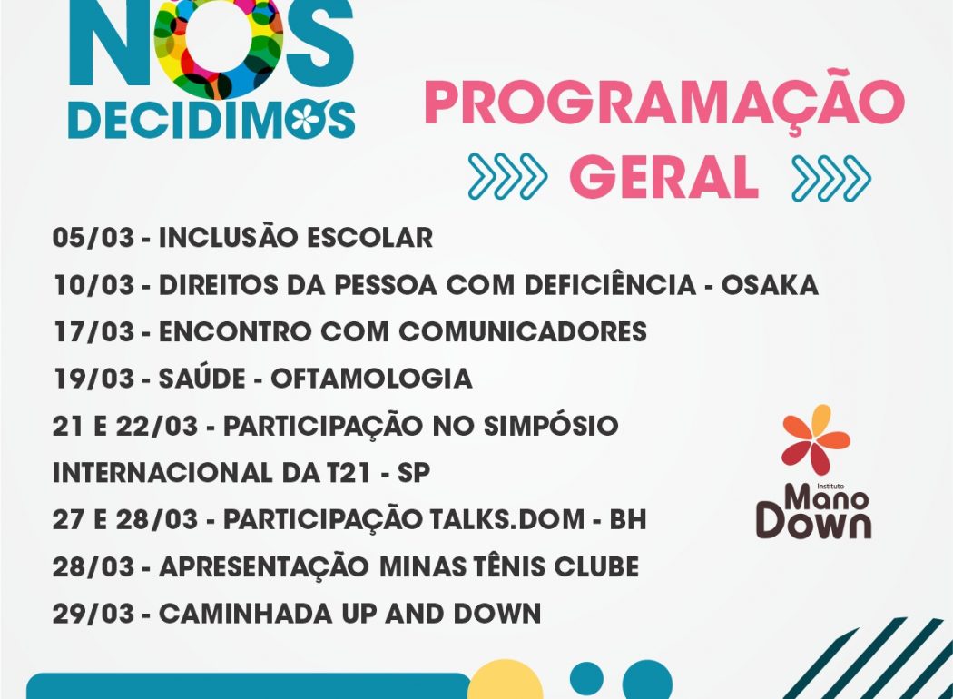 Março é o mês da síndrome de Down, e como de costume, o calendário do Instituto Mano Down virá repleto de atividades super bacanas para todos! A seguir, nossa programação completa: