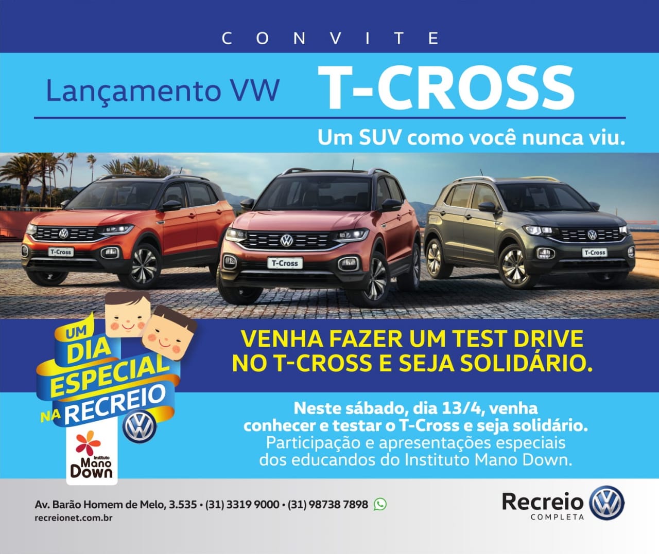 O Instituto Mano Down recebeu o convite especial para participar da ação solidária, promovida pela concessionária Recreio BH, durante o lançamento do carro T-Cross, da Volkswagen.
