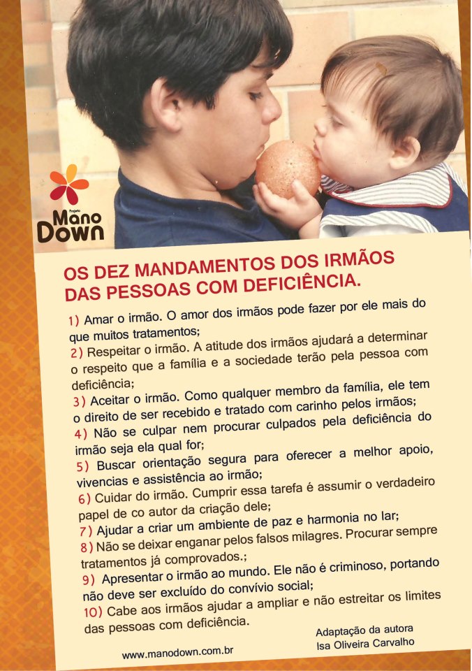 1. Que os irmãos podem e dever participar ativamente no desenvolvimento e apoio na educação de nossos irmãos com síndrome de Down.