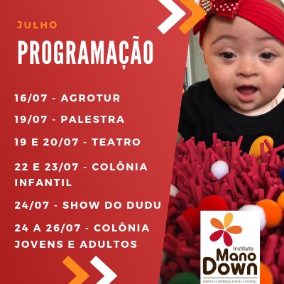 Entre os dias 13/07 a 04/08 o Instituto Mano Down estar á em recesso. Neste período não serão realizadas oficinas e atendimentos de saúde.